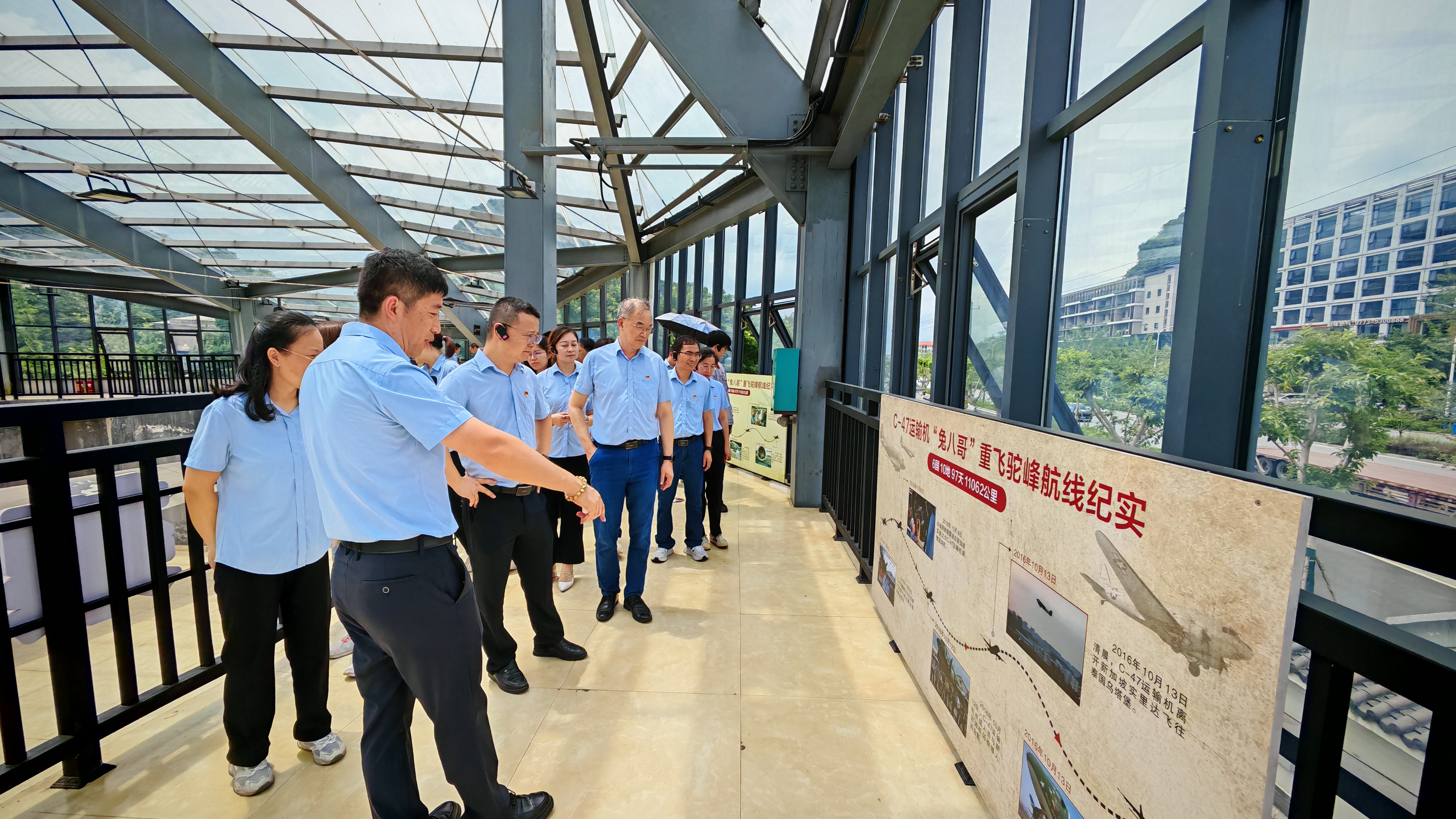 活動中,黨員們懷著崇敬的心情,認真觀摩了飛虎隊紀念館內陳列的作戰遺物、歷史照片等珍貴史料,并在飛機館瞻仰了曾翱翔于抗戰烽火的C-47運輸機。一件件實物、一幅幅影像,無聲訴說著那段血與火的歲月,讓同志們身臨其境地感受到飛虎隊將士們臨危不懼、視死如歸、勇往直前的英雄氣概。